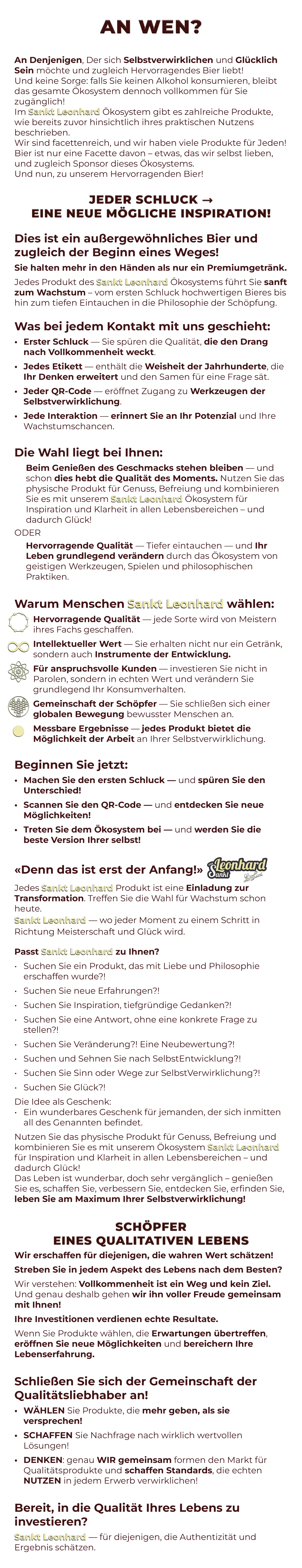 Im Geschmack offenbart sich das ideale Gleichgewicht aus malziger Würze, edlen Gewürzen und luxuriöser Hopfenfrische. Die samtige Textur und der bezaubernde Nachgeschmack machen dieses Getränk zu einer wahren Perle des Premiumsegments für die anspruchsvollsten Kenner.